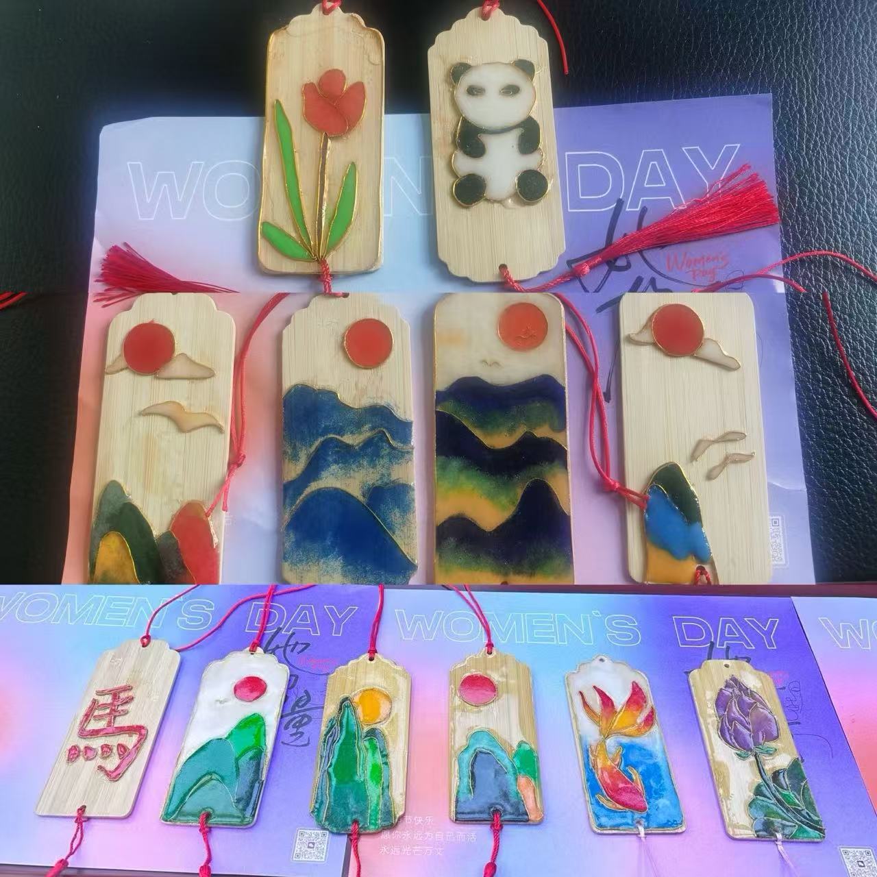 活动中,指导老师带大家领略了掐丝珐琅这项国家级非物质文化遗产的魅力后,女职工们纷纷化身“工匠”,参照山水、花卉、锦鲤等各种图案动手制作,经过近两小时的掐丝、填色等步骤,一件件独具匠心、流光溢彩的掐丝珐琅书签相继在指尖绽放。